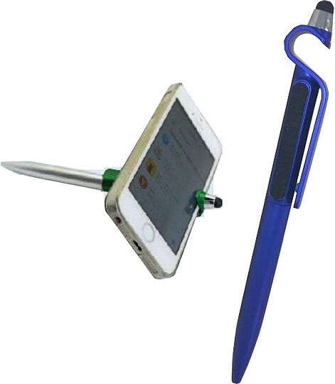 עט למסך מגע משולב מעמד לטלפון ומנקה מסך.
